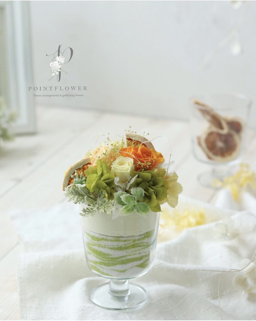 カラーサンドを使ってプリザーブドフラワーをアレンジ